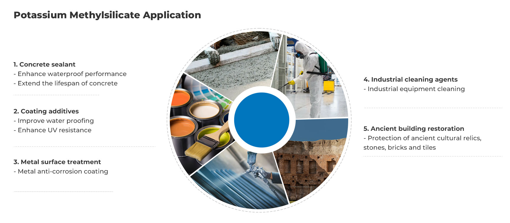 Bagaimana Potassium metil silikat Mencapai aplikasi yang luas dalam bidang bahan kalis air bahan binaan dengan sifat uniknya?